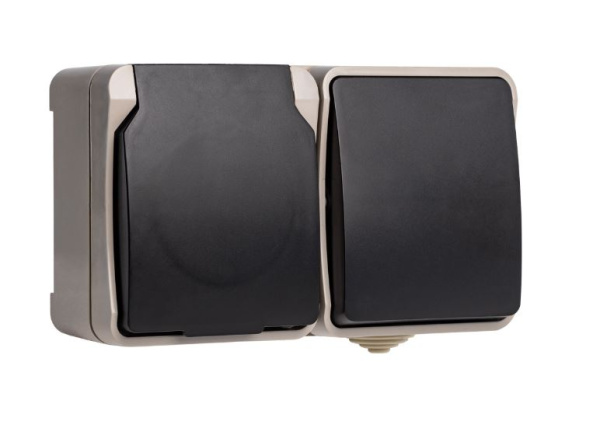 Блок розетка выключатель, IP54, бежевый, "Сатурн" (SBE-04w-16-SWS)