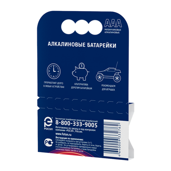 Элементы питания Фотон типоразмера LR03(ААА), еще их называют «мизинчиковые» батарейки. Применяются в большинстве устройств работающих от батареек. Игрушки, медицинские приборы, компьютерные мыши и клавиатуры, бесконтактные ключи, пожарные сигнализации, часы, пульты и пр.