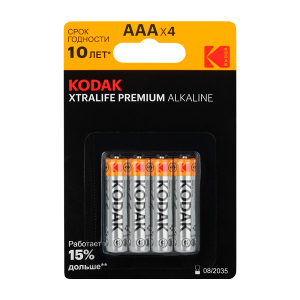 Батарейка Kodak XTRALIFE PREMIUM LR03 AAA BL4 Alkaline 1.5V (4/40/200/32000)