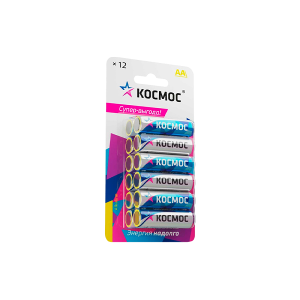 Щелочные (алкалиновые) батарейки Космос – в упаковке 12 шт - выгодная большая упаковка для розницы. Типоразмер батареек АА также называют «пальчиковые» (на приборах-потребителях может обозначаться как LR6, R6, UM3). Работают как дорогие батарейки –