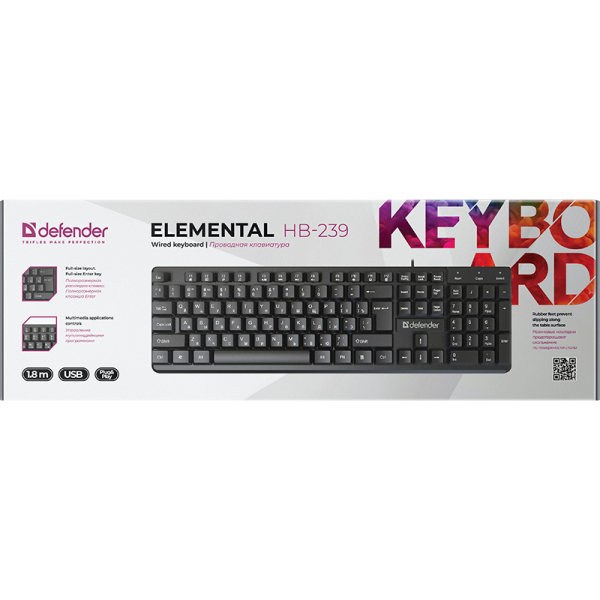 Клавиатура проводная Defender HB-239 RU Elemental классическая USB 1.8м черный (1/20)