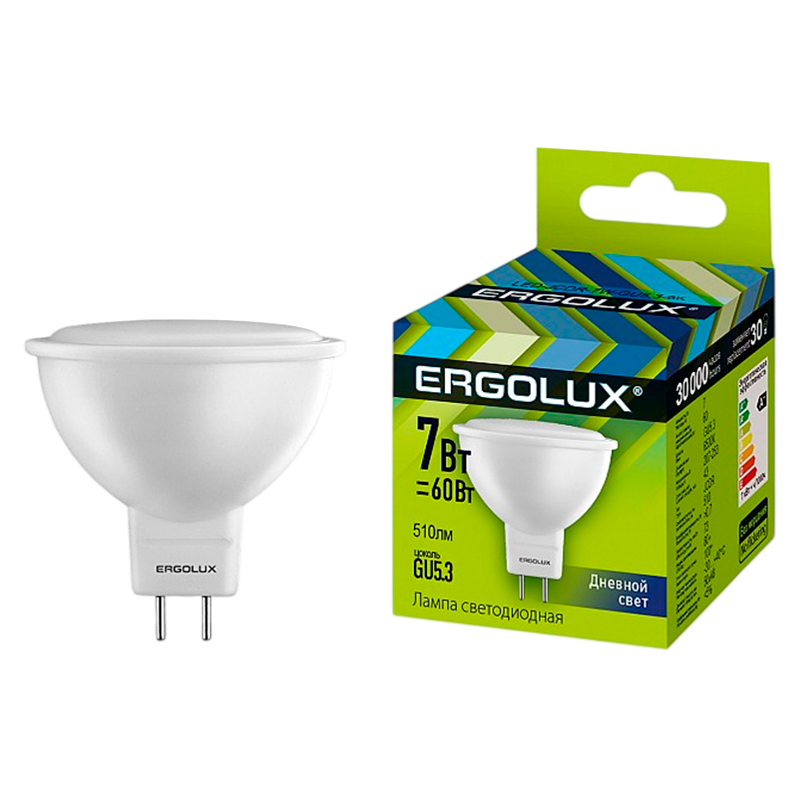 Светодиодная лампа ERGOLUX LED-JCDR-7W-GU5.3-6K подходит для жилых и офисных помещений, а также уличных светильников со степенью защиты не менее IP54. Мощность 7Вт, световой поток 665 лм.