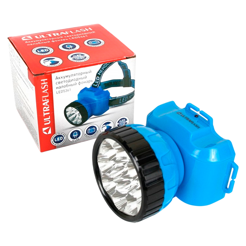 Фонарь налобный Ultraflash LED5361 оснащен 12 мощными светодиодами и двумя режимами работы. Подходит для использования при ночных выходах, рыбной ловле и ремонте. Синий цвет корпуса.