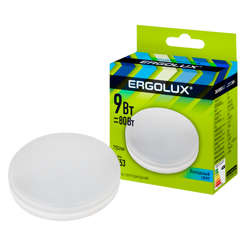 Светодиодная лампа ERGолUХ 9Вт GX53 4500K подходит для жилых, офисных и производственных помещений, а также в уличных светильниках со степенью защиты не менее IP54.