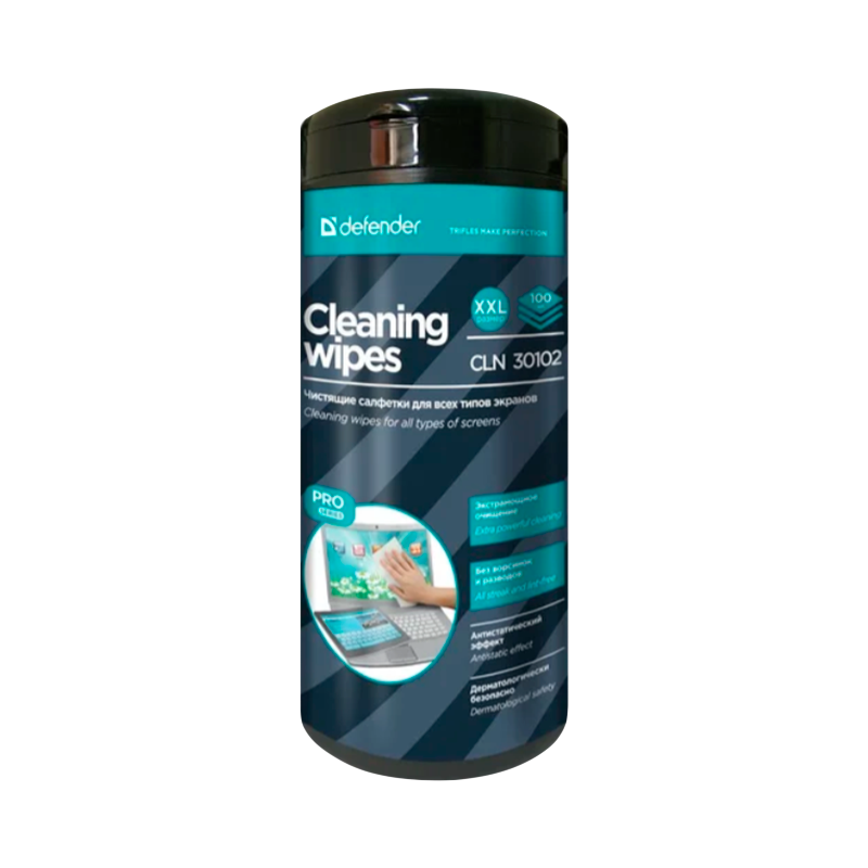 Влажные салфетки Defender CLN30102 Pro 100шт. для экранов туба (1/12)