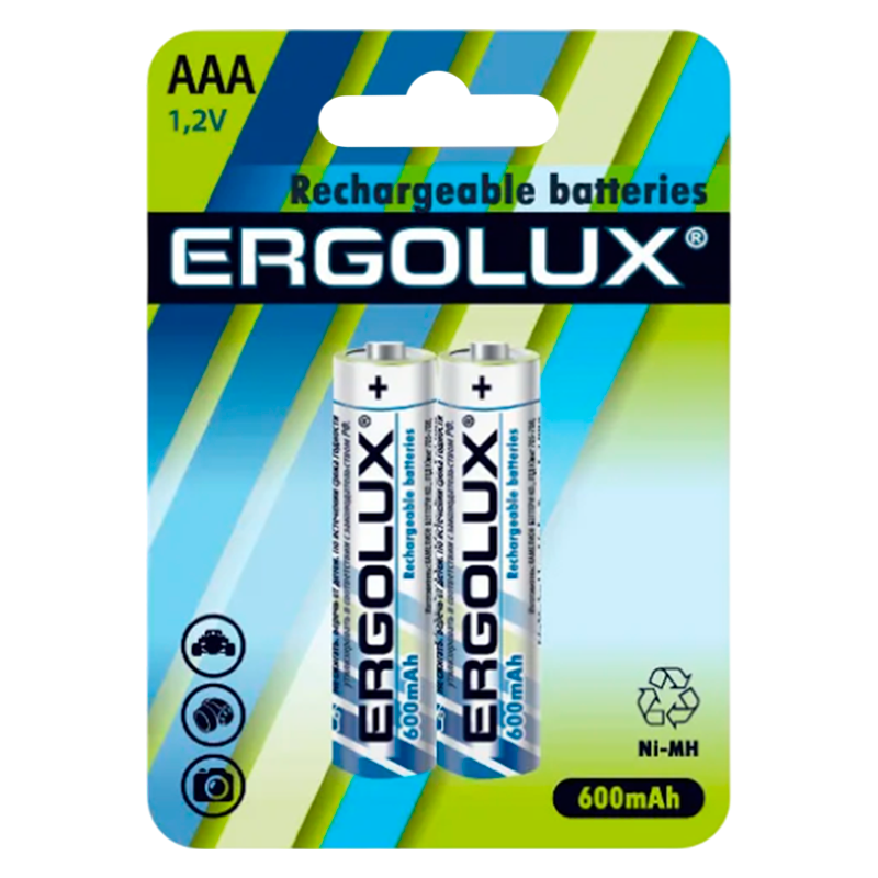Аккумулятор бытовой Ergolux HR03 AAA BL2 NI-MH 600mAh (2/24/480)