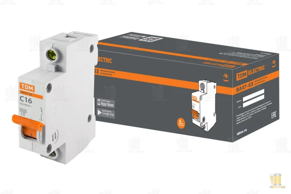 Автоматический выключатель ВА47-63 1Р 63А 4,5кА х-ка С TDM (SQ0218-0009) /12/120