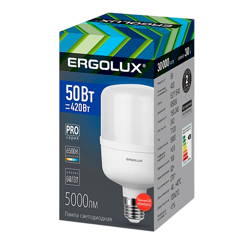Лампа светодиодная Ergolux HW E40 50W 6500К 172-265V цилиндр.