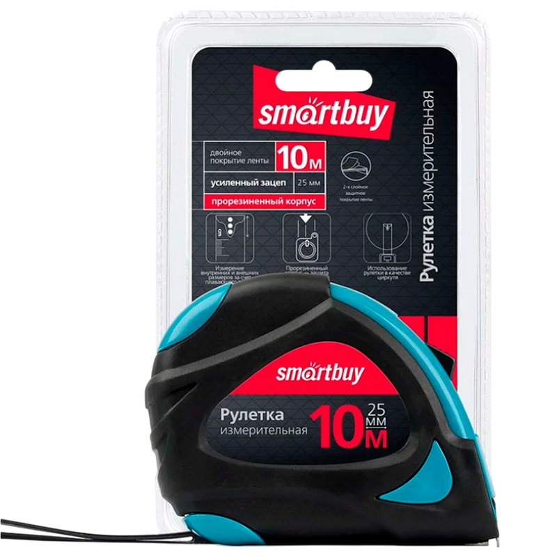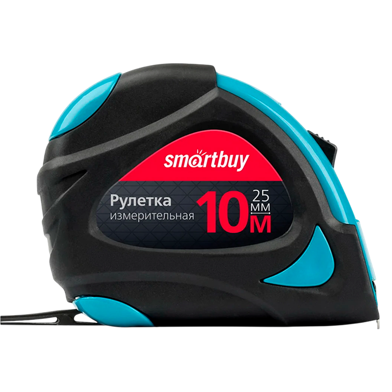 Рулетка измерительная Smartbuy ONE Tools 10м*25мм пластик 2 фиксатора прорезиненная голубой (1/48)