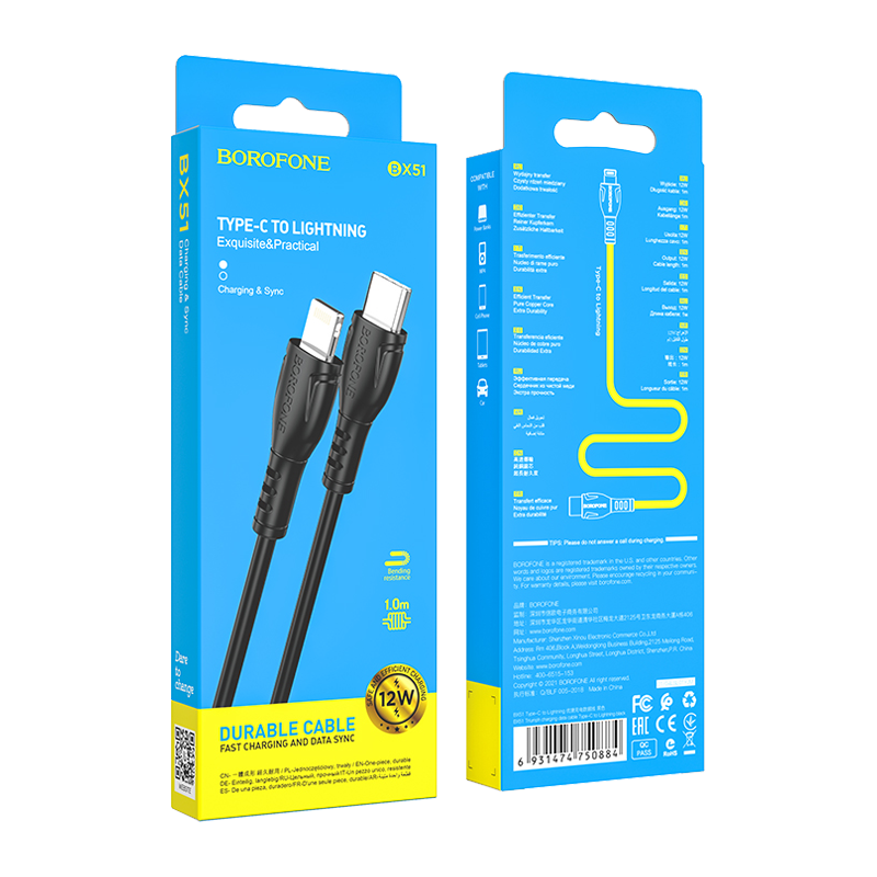 Кабель Borofone BX51 Lightning (m)-Type-C (m) 1м 2.4A ПВХ черный (1/360)