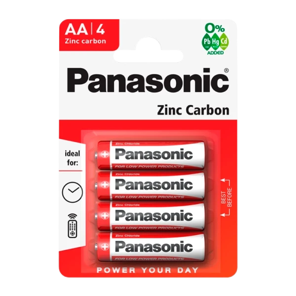Солевые батарейки Panasonic R6 предназначены для работы в устройствах с низким энергопотреблением: настенных часах, пультах ДУ, карманных фонарях, радиоприемниках. Батарейки Panasonic производятся по технологии 0% добавленного свинца, ртути и кадмия. Также необходимо помнить, что солевые элементы питания могут работать только при положительных температурах!