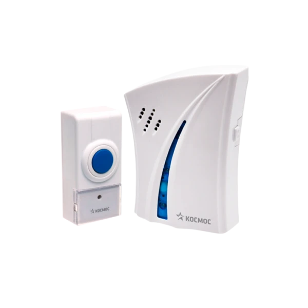 Беспроводной радио-звонок Космос AG510B; 32 мелодии на выбор, включая стандартный вызов; Мгновенная установка без инструментов; Применяется как в городских квартирах, так и в загородных домах, где кнопка вызова может размещаться прямо у калитки; Кнопка защищена от дождя; Дистанция 150 метров при прямой видимости;