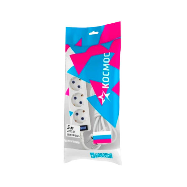 Удлинитель Космос 3р.С/З 10A 5.0м ПВС 3x0.75мм² белый (1/25)