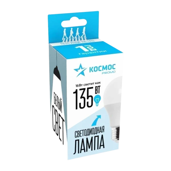 Лампа светодиодная Космос A60 E27 16W 4500К 220V груша ПРОМО матовая (1/10/100)