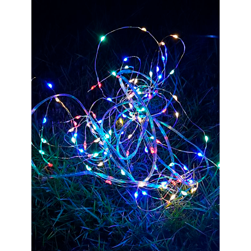 Светодиодная гирлянда Космос 196 20LED из гибкого медного провода "Разноцветные нити" на солнечной батарее. Длина световой части гирлянды - 4 метра, общая длина - 7 метров, 100 светодиодов по 0,03Вт. Гирлянда заряжается от солнечного света, включается автоматически с наступлением темноты. Время непрерывной работы при полностью заряженном аккумуляторе - 8 часов. IP44.