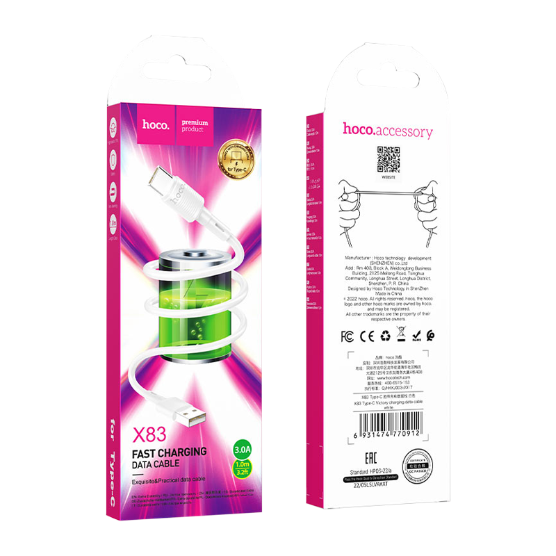 X83 Victory, кабель для зарядки и передачи данных USB на Type-C,