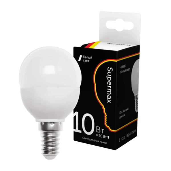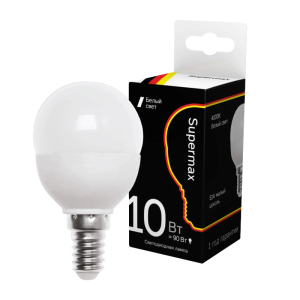 Лампа светодиодная Supermax E14 10W 4000К 230V шар (1/10/80)