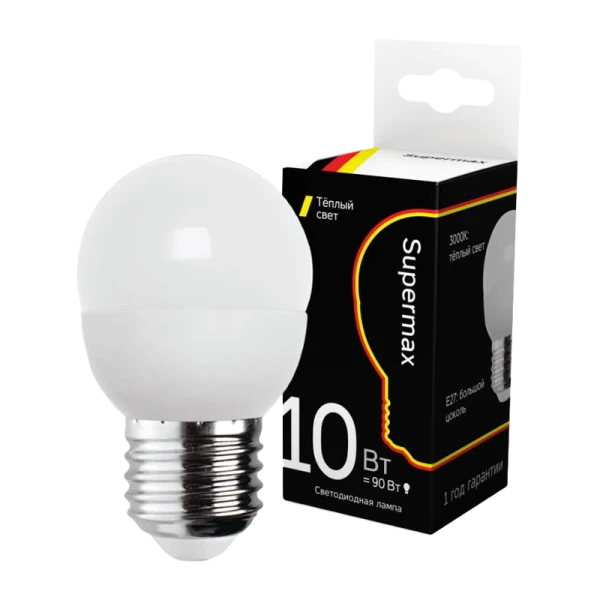 Лампа светодиодная Supermax E27 10W 3000К 230V шар (1/10/80)