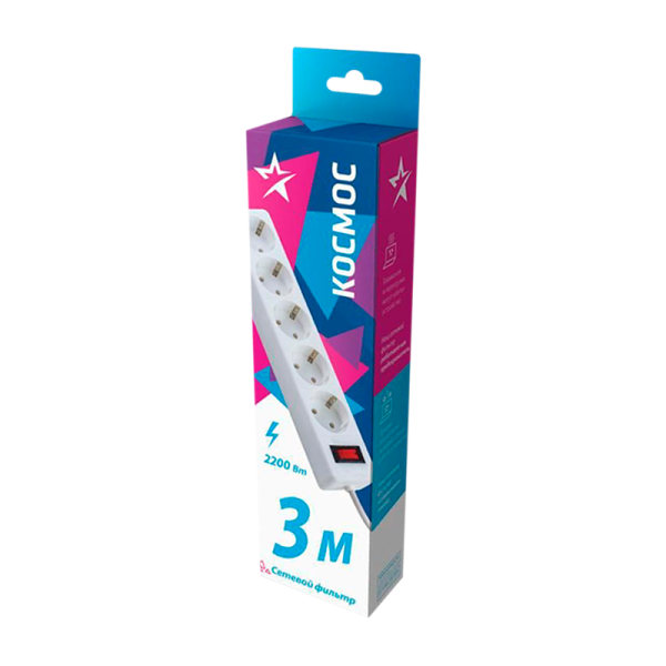 Удлинитель с сетевым фильтром КОСМОС FKsm3m-5g(W) – это надежное решение для подключения нескольких устройств одновременно. Длина кабеля составляет 5 метров, что позволяет удобно размещать технику на расстоянии от розетки. Сетевой фильтр Космос оборудован 5 гнездами, что делает его идеальным для использования в офисах и домашних условиях. Одной из ключевых особенностей данного удлинителя является наличие защиты от перенапряжений.