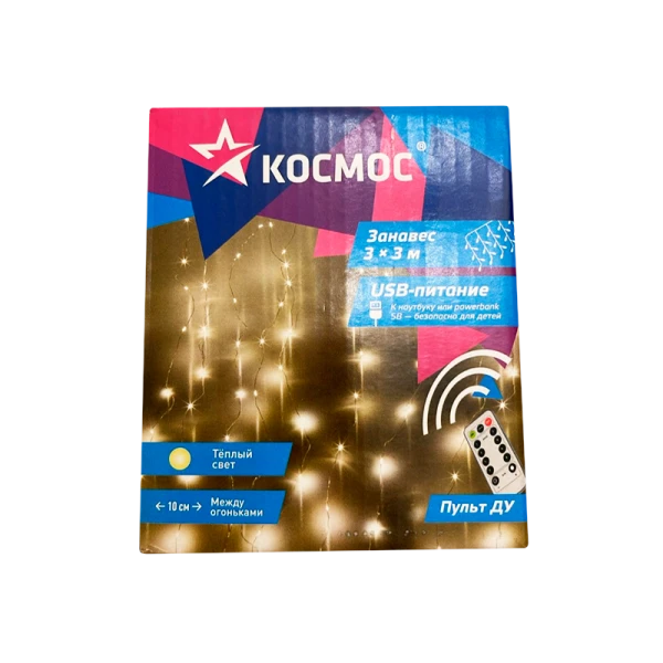 Гирлянда Космос Занавес Роса 300LED 3х3м+2м 10 нитей пульт (1/24)