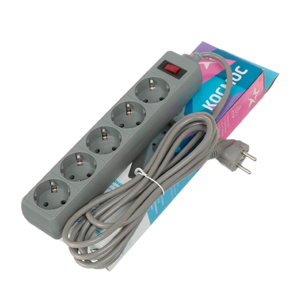 Сетевой фильтр Космос 5р.С/З 10A 5.0м ПВС 3x0.75мм² с выкл. серый (1/20)