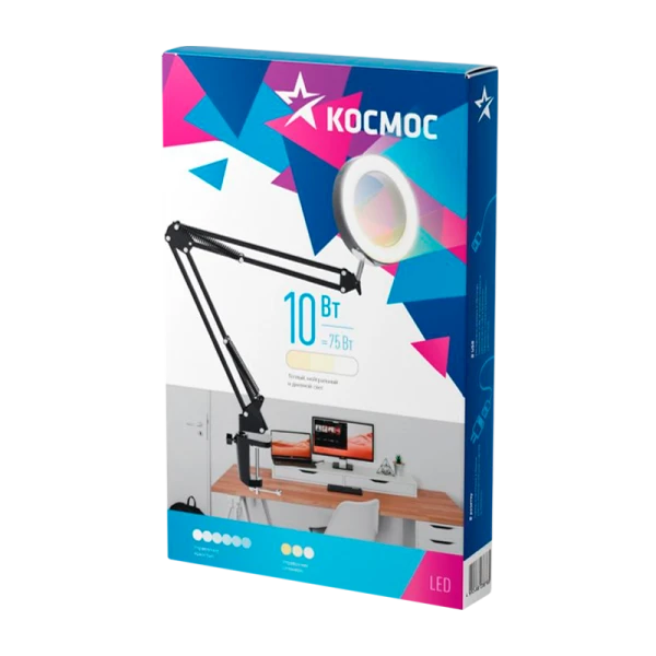 Светильник настольный Космос DESK038 10W 5V IP20 струбцина 3 цв. черный (1/20)