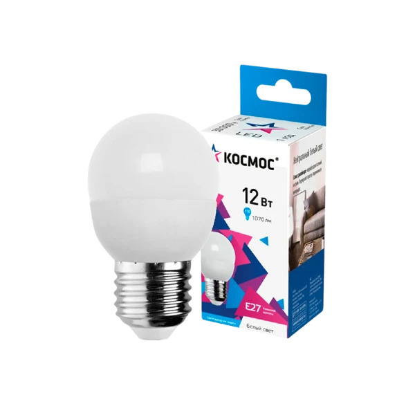 Лампа светодиодная Космос GL45 E27 12W 4500К 174-265V шар матовая (1/10/80)