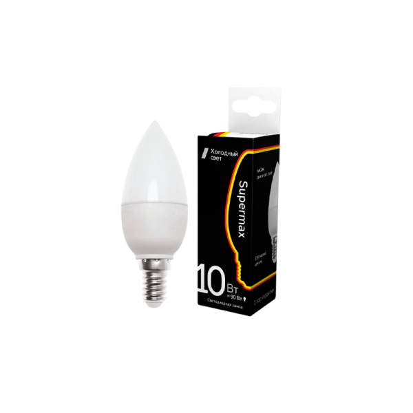 Лампа светодиодная Supermax E14 10W 6400К 230V свеча (1/10/80)