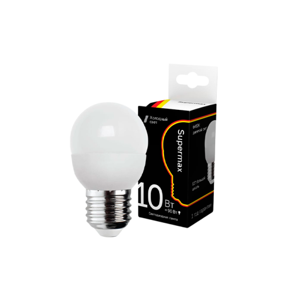 Лампа светодиодная Supermax E27 10W 6400К 230V шар (1/10/80)