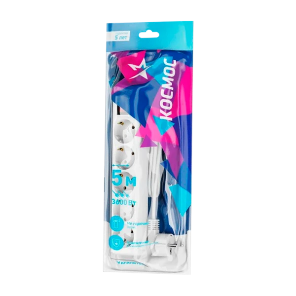 Удлинитель 5х5м с заземлением 16А IP20 ПВС 3х1 с выключателем КОСМОС YKsm5m-5g-Z-V(K) — это надежное решение для подключения нескольких электрических приборов в вашем доме или офисе. С мощностью до 3600 Вт, он без проблем справляется с одновременным использованием таких энергоемких устройств, как чайники, микроволновые печи и холодильники.