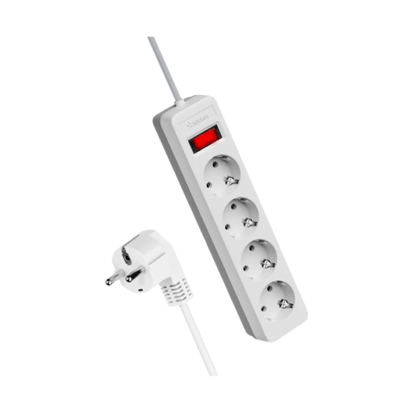 Сетевой фильтр Космос 4р.С/З 10A 1.5м ПВС 3x0.75мм² с выкл. белый (1/20)