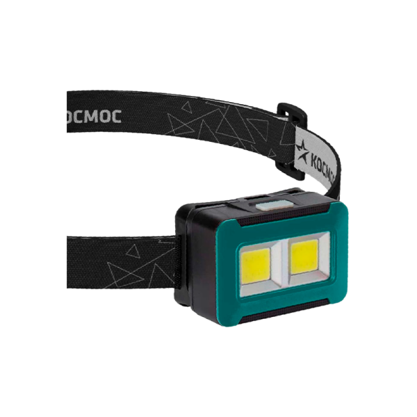 Фонарь налобный Космос 519B 4WCOBLED от батареек 3хАА IP44 3 режима зеленый/черный (1/30/240)