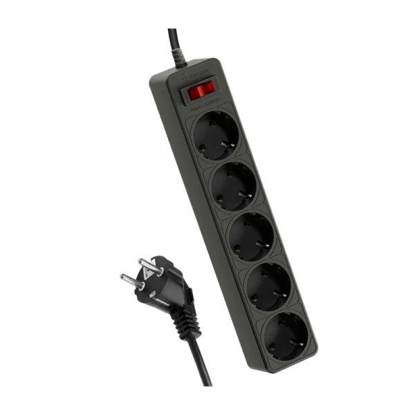 Черный сетевой фильтр Космос 1,8м на 5 гнезд с двумя защитами для гаджетов и дорогой техники – варистор для защиты от «плохого» тока и терморазмыкатель для защиты от перегрузки и замыкания в сети.
