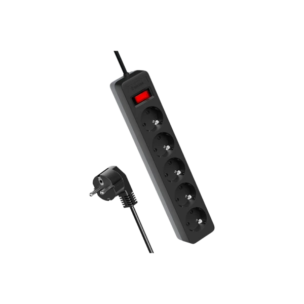 Черный сетевой фильтр 1,8м на 5 гнезд с двумя защитами для гаджетов и дорогой техники – варистор для защиты от «плохого» тока