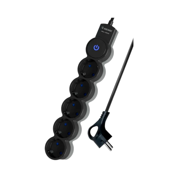 Удлинитель Космос 5р.С/З 10A 3.0м с выкл. ПВС 3х0.75мм² IP20 черный (1/30)
