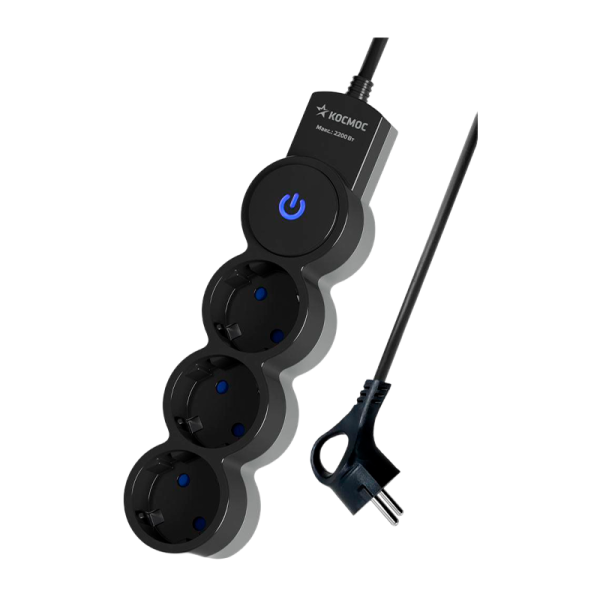 Удлинитель Космос 3р.С/З 10A 5.0м с выкл. ПВС 3х0.75мм² IP20 черный (1/30)