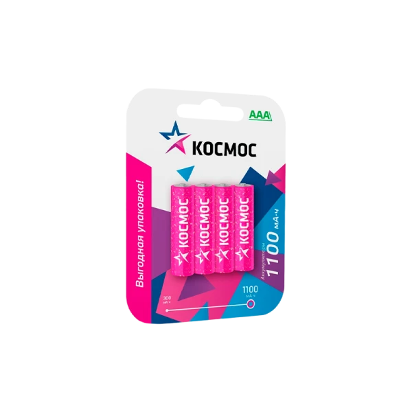 Аккумулятор бытовой Космос HR03 AAA BL4 NI-MH 1100mAh (4/48/576)