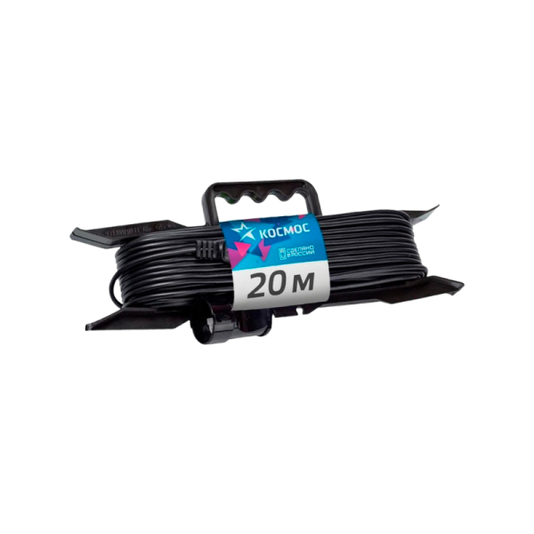 Удлинитель Космос 1р.Б/З 6A 20.0м ПВС черный (1/10)
