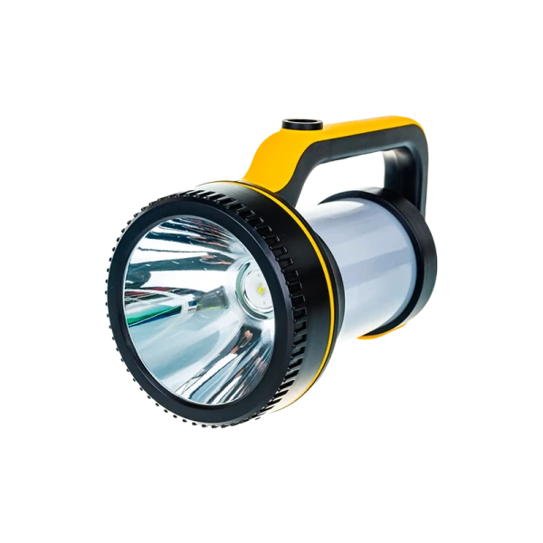 Ручной фонарь 2-в-1 со встроенным светильником на 360 градусов. Матовый рассеиватель дает мягкий, рассеянный свет, приятный для глаз. Совмещает луч фонаря (светит как фара автомобиля, направленный свет с ярким пятном засветки в центре) и свет кемпинговой лампы (освещает пространство вокруг себя).