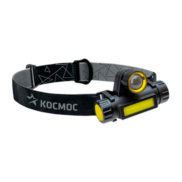 Налобный фонарик Космос 2-в-1, снимается с резинки для использования в качестве ручного фонарика.