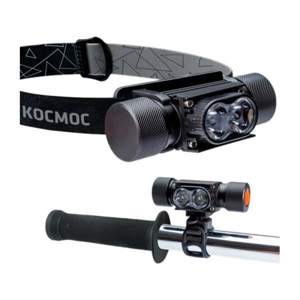 Налобный велосипедный аккумуляторный фонарь КОСМОС 10Вт LED, съемный Li-ion 18650 1200mAh, алюминий, USB шнур KOS501Lit