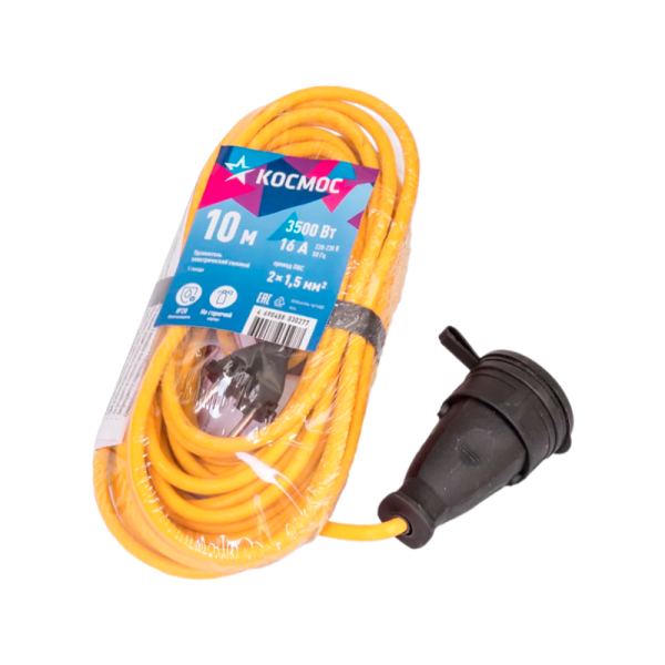 Удлинитель Космос УХ16 1р.Б/З 16A 10.0м ПВС 2x1.5мм² (1/10)