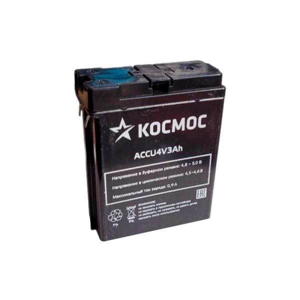 Необслуживаемая герметичная свинцово-кислотная аккумуляторная батарея с предохранительным клапаном Космос 4V 3Ah.