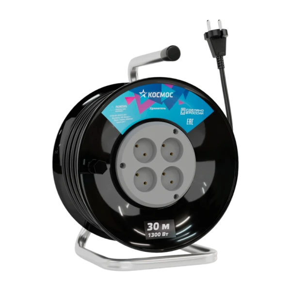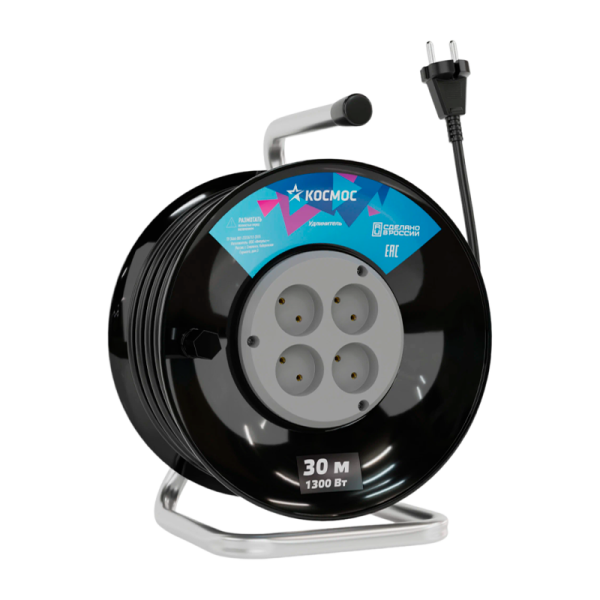 Удлинитель на катушке Космос 30 метров на 4 гнезда;