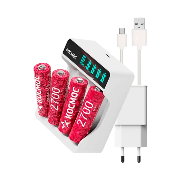 З/У для аккумуляторов Космос 516 AA/AAA 4 слота +4AA 2700mAh+кабельType-C, блок питания (1/30/60)