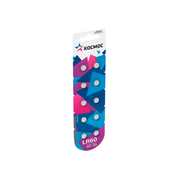 Батарейка Космос G1/LR621/LR60/364A/164 BL10 Alkaline 1.5V (10/100/2000)