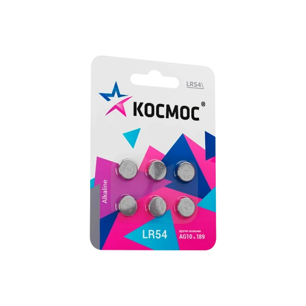 Батарейка Космос G10/LR1130/LR54/389A/189 BL6 Alkaline 1.5V (6/60/2400)