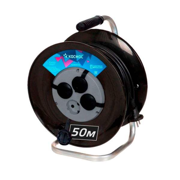 Удлинитель Космос 4р.С/З 16A 50.0м ПВС 3x1.5мм² IP20 на катушке черный (1)