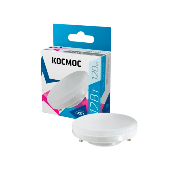 Светодиодная лампа КОСМОС 12Вт GX53 220В 4500K 482449 является аналогом лампы накаливания 120 Вт. В основе лампы используются чипы от мирового лидера Epistar, что обеспечивает надежную