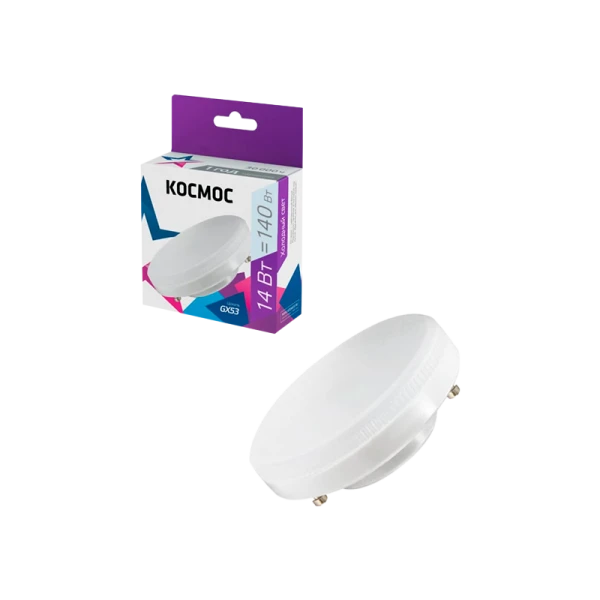 Светодиодная лампа КОСМОС LED 14Вт 220В GX53 6500K, является аналогом лампы накаливания 140 Вт. В основе лампы используются чипы от мирового лидера Epistar, что обеспечивает надежную